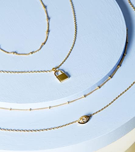 PAVOI 14K Gold Plated Layering Necklaces | Stylish Minimalist Design Pendant Necklaces | Butterfly, Heart, Lock, Evil Eye, Coin, Lightning Bolt, Circle, Cross Pendants for Women