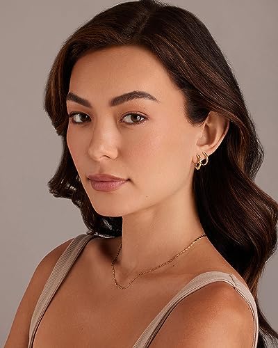 PAVOI 18K Gold Plated 925 Sterling Silver Posts 3 Pairs Small Hoop Earrings Set | Cubic Zirconia Plain Rope Huggie Hoops for Women | Lightweight Earrings Pack