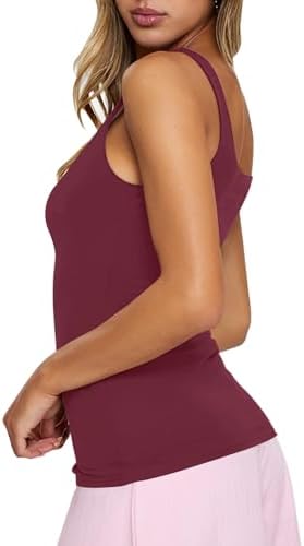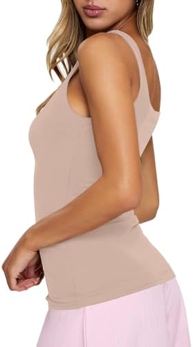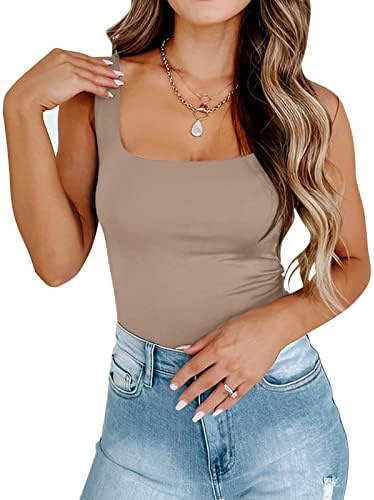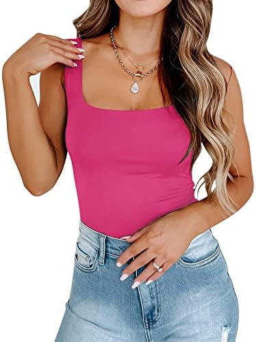 PINKMSTYLE Womens Sleeveless Basic Double Lined Square Neck Tank Tops