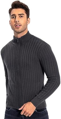 COOFANDY Men's Full Zip Cardigan Sweater Slim Fit Cable Knitted Zip Up Sweater with Pockets