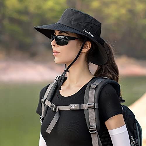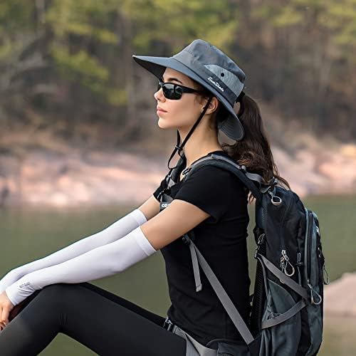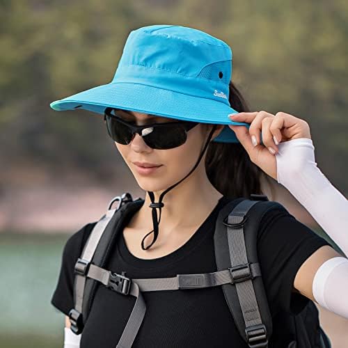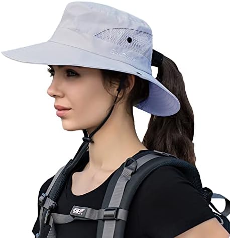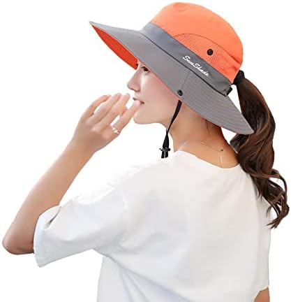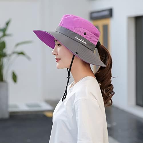 Ponytail Sun Bucket Hat for Women Men Wide Brim UPF 50+ Fishing & Beach Hats