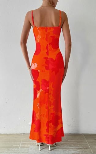 PRETTYGARDEN Women's 2024 Summer Floral Spaghetti Strap Maxi Dress Stretch Sexy Bodycon Dress Backless Slip Long Dresses
