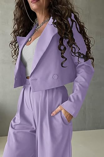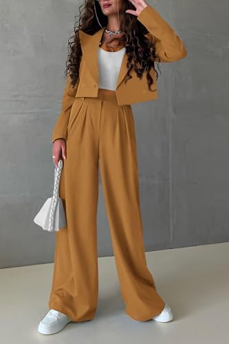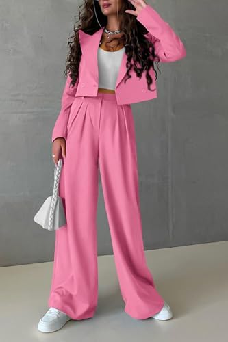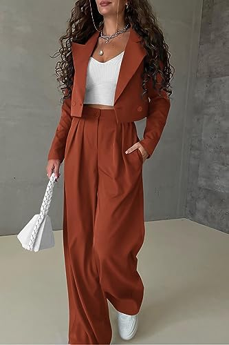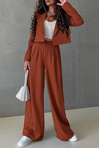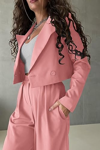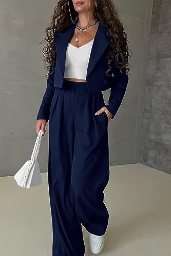 PRETTYGARDEN Womens Cropped Blazer Jackets High Waisted Wide Leg Work Pants Suit Set