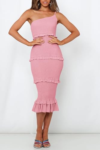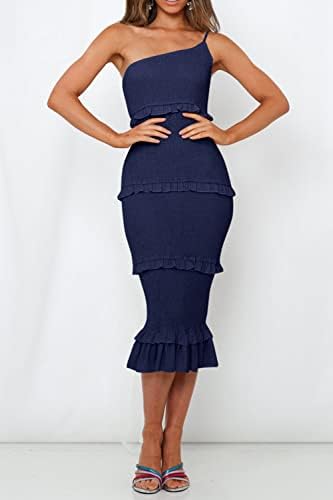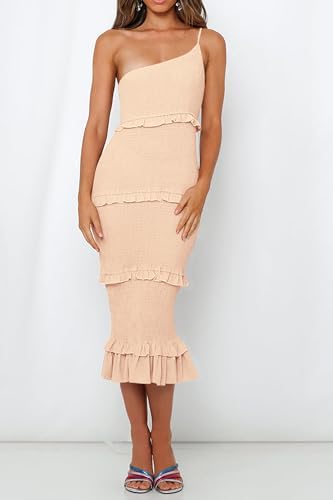 PRETTYGARDEN Womens One Shoulder Summer Dress Casual Midi Bodycon Dresses