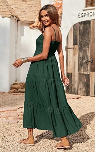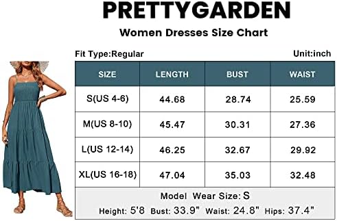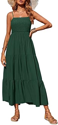 PRETTYGARDEN Womens Spaghetti Strap Smocked Tiered Long Beach Sun Dress