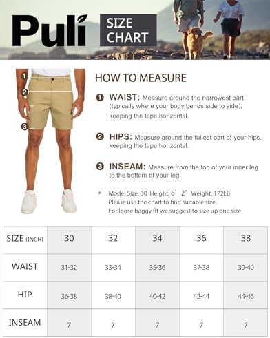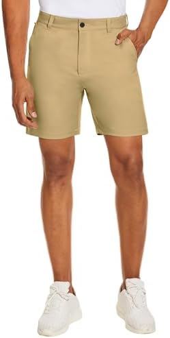 PULI Men's Golf Dress Shorts Flat Front Hybrid 7 Inch Lightweight Quick Dry Chino Casual with Pockets