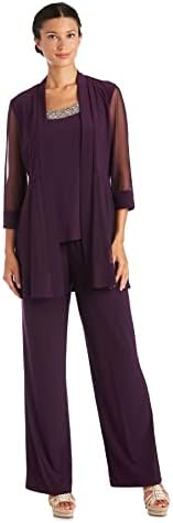 R&M Richards Women's Beaded Neck 2 Piece Pant Set
