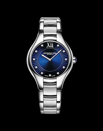 RAYMOND WEIL Noemia Women's Watch, Quartz, Blue Dial, Roman Numerals with Diamonds, Stainless Steel, 32 mm (Model: 5132-ST-50181)