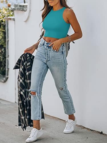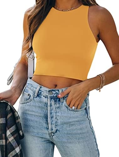 REORIA Butsmooth® Women's Sleeveless Halter Neck Double Lined Casual Basic Tank Crop Tops