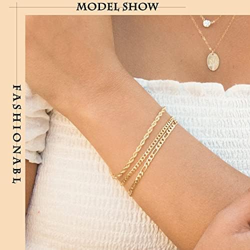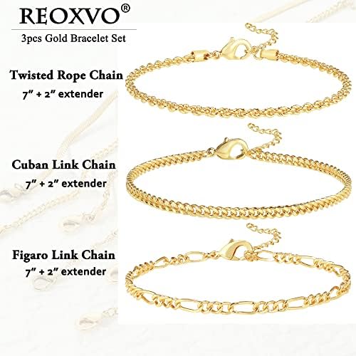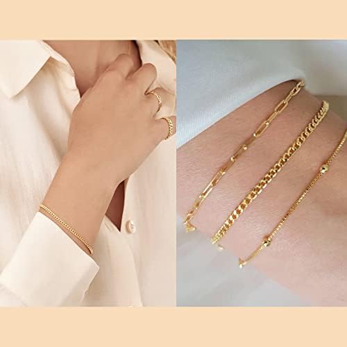 Reoxvo Dainty Bracelets for Women,Sterling Silver Plated Link Chain Charm Bracelet Set for Women Stack 14K Gold Plated Link Bracelets Jewelry for Women