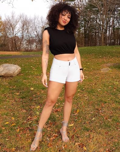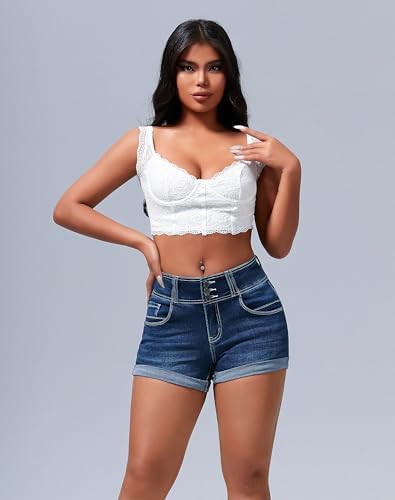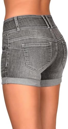 roswear Women's High Waisted Stretchy Denim Shorts Cuffed Jean Shorts