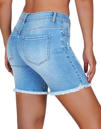 roswear Women’s Casual Summer Ripped High Waisted Denim Shorts Stretch Distressed Frayed Raw Hem Jean Shorts