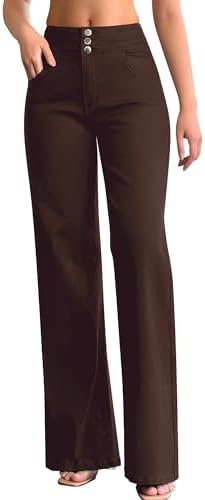 roswear Women’s Wide Leg Jeans Casual High Waisted Stretch Baggy Loose Denim Pants