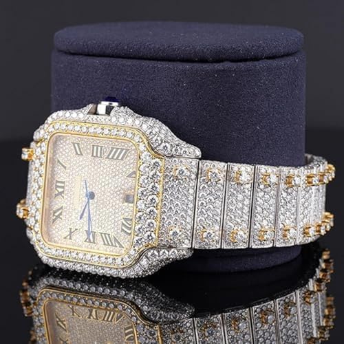 Round Shape Diamond Hip Hop Style Fabulous Iced Out Roman Number Moissanite Watch for Men