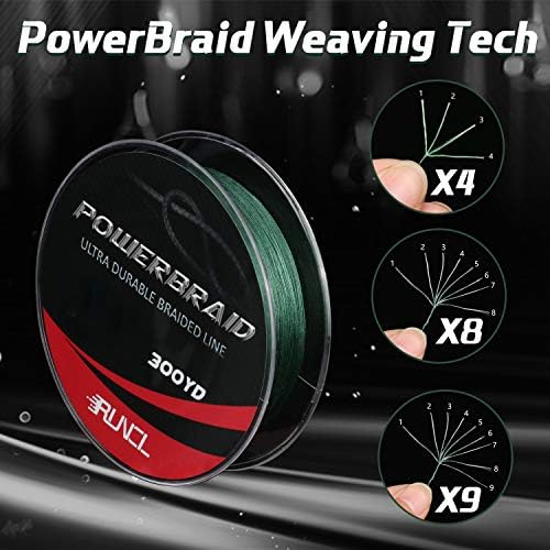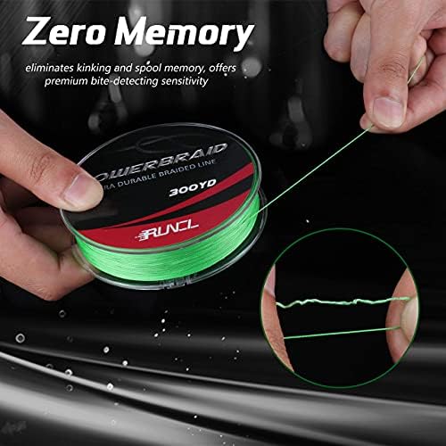 RUNCL PowerBraid Fishing Line 4/8/9 Strands, Braided Fishing Line 300/500/1000Yds - Seamless Weaving Tech, Enhanced Coating Tech, Zero Stretch, High Sensitivity, Smaller Diameter - Braid Line 15-115LB