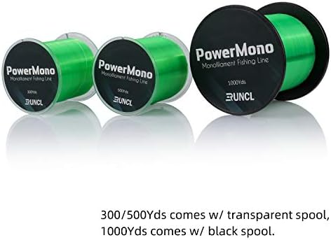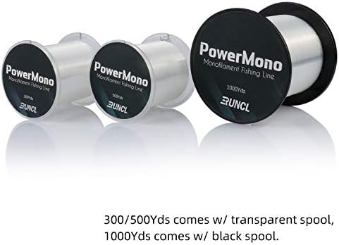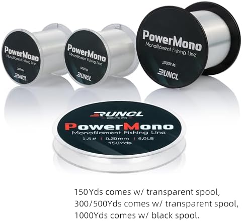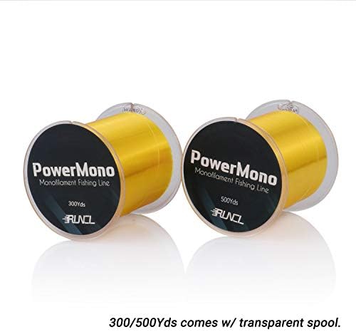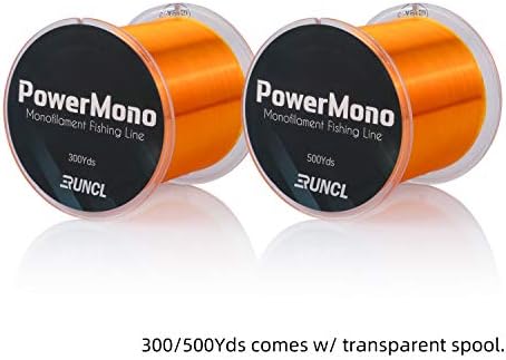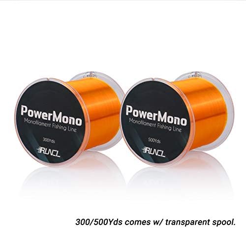 RUNCL PowerMono Fishing Line, Monofilament Fishing Line 300/500/1000Yds - Ultimate Strength, Shock Absorber, Suspend in Water, Knot Friendly - Mono Fishing Line 3-35LB, Low- & High-Vis Available