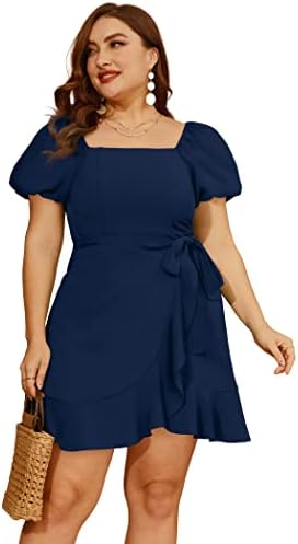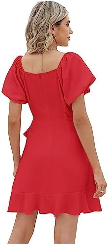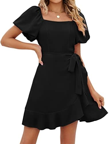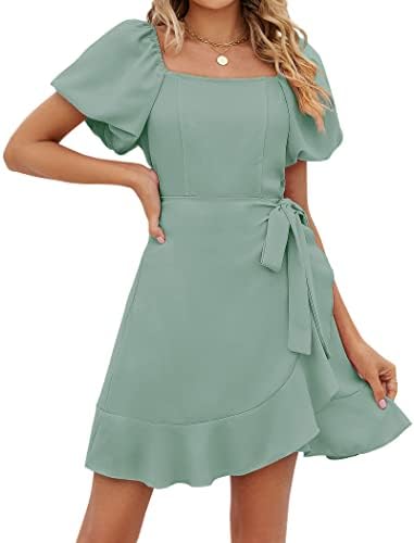 SAMPEEL Puff Sleeve Square Neck Summer Dress for Women 2024 Tie Waist Short Dresses