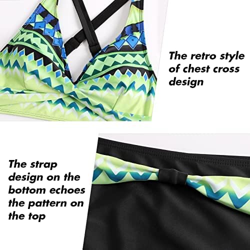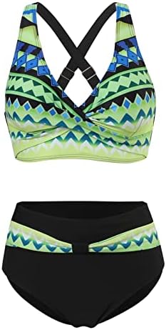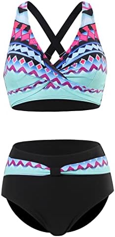 SEAFORM Womens Two Piece Swimsuits Wrap Front Bikini High Waisted Bottom Tummy Control Bathing Suits Vintage Print Swimwear