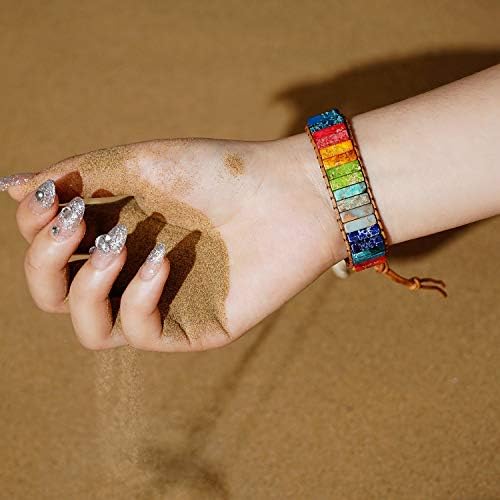 sedmart 7 Chakra Bracelets for Women with Real Stones Leather Wrap Healing Bead Bracelet Women Men Boho Friendship Jewelry