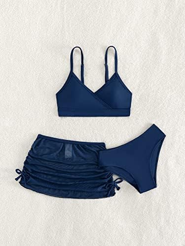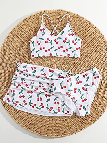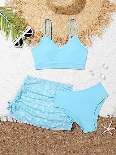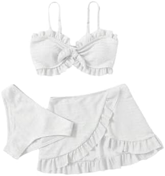 SHENHE Girl's 3 Piece Cute High Waisted Ruffle Trim Swimsuit Bikini Sets with Beach Skirt