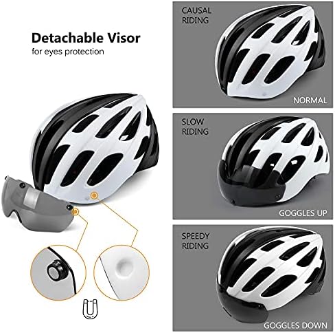 Shinmax Bike Helmet with USB Rechargeable Light & Detachable Magnetic Goggles UV Protective, Bicycle Helmet Men Women Mountain Road Adjustable Adult Cycling Helmet (WT-049)