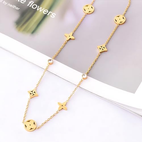 shizhen Four Leaf Clover Necklace - 18K Gold Plated with Zircon, Dainty and Waterproof for Everyday Wear. Perfect as a Bridesmaid or Mom Friend Gift