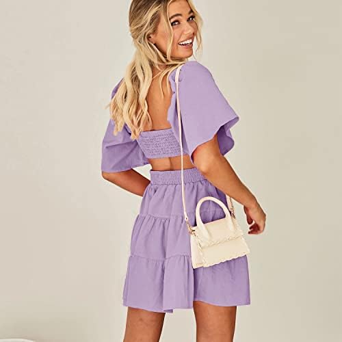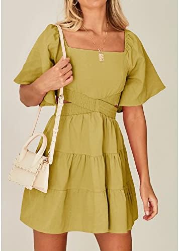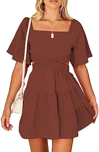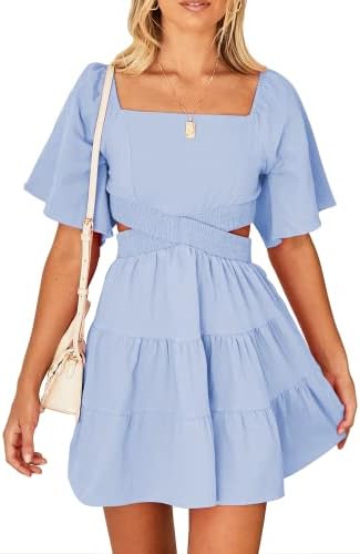 Shy Velvet Women's Summer Dress Square Neck Short Sleeves Crossover Waist Casual Party Mini Dress