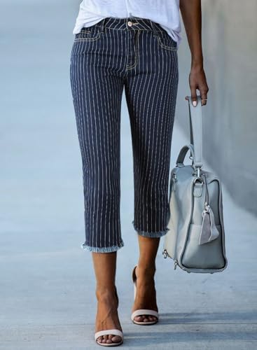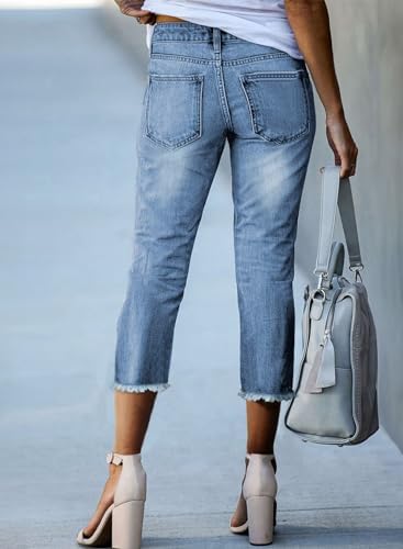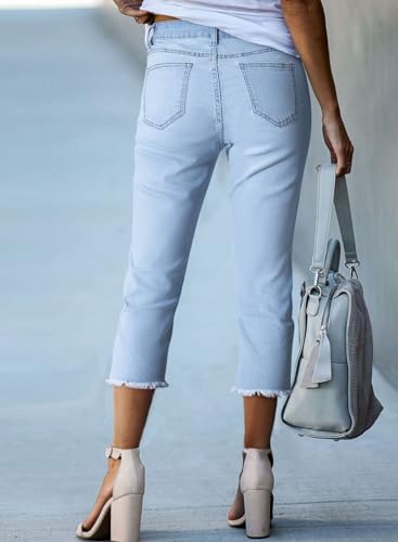 Sidefeel Women's Capri Jeans High Waisted 2024 Summer Straight Leg Raw Hem Denim Pants