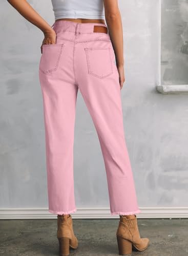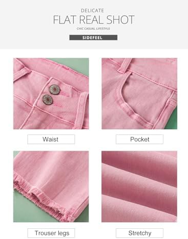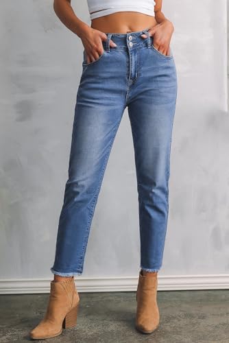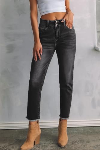 Sidefeel Women's High Waisted Jeans Strechy Raw Hem Straight Leg Denim Pants with Pockets