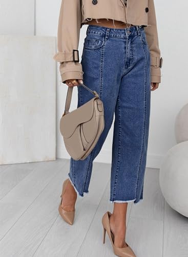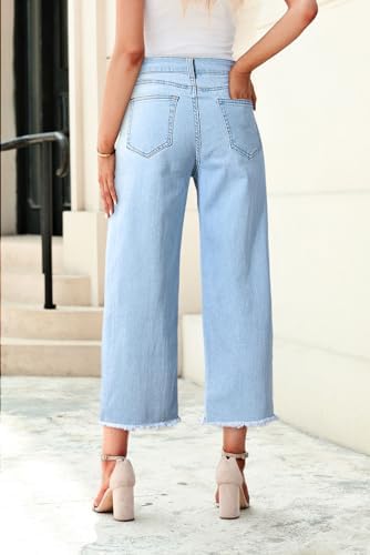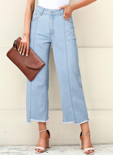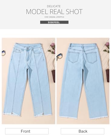 Sidefeel Women's Wide Leg Capri Jeans Casual Summer Straight Leg Denim Pants with Pockets
