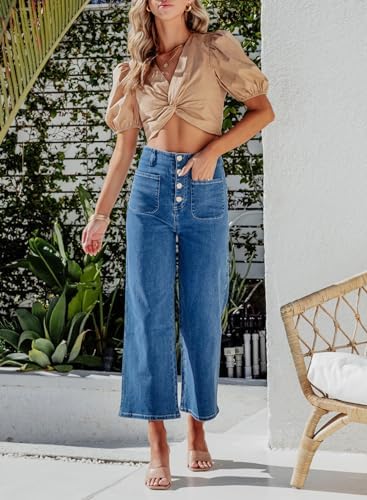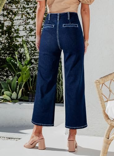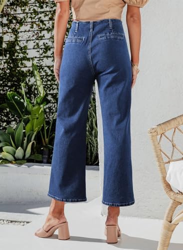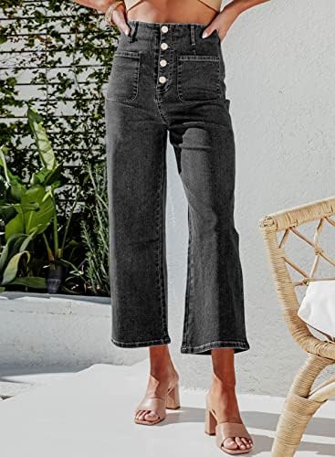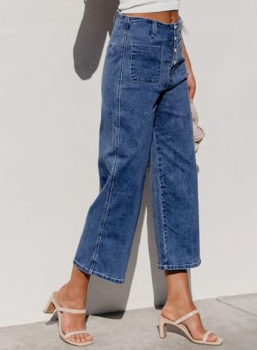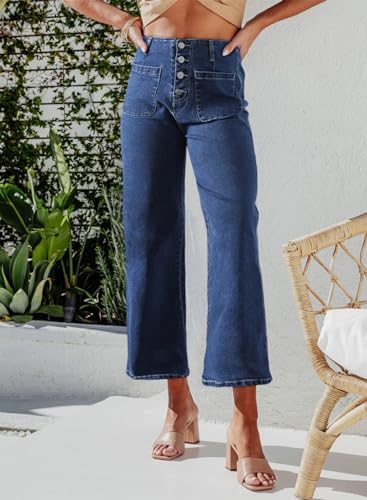 Sidefeel Women's Wide Leg Jeans High Waisted Stretchy Straight Leg Jeans Buttoned Loose Denim Pants with Pocket
