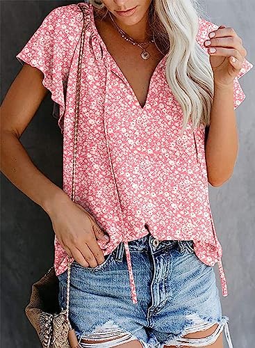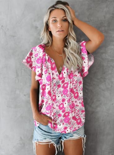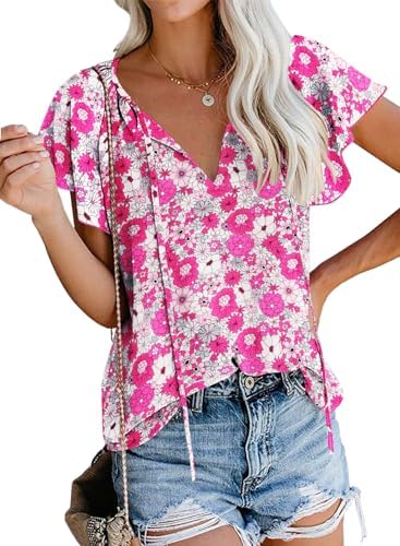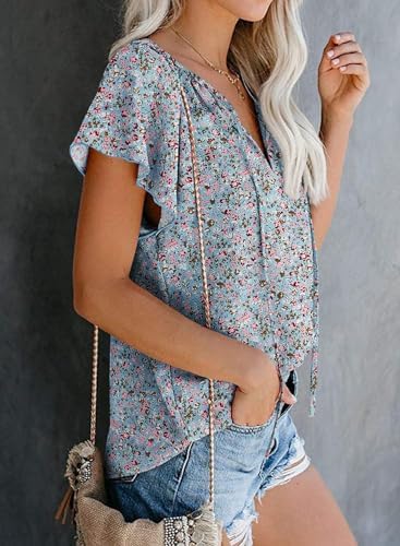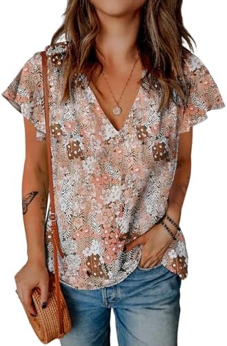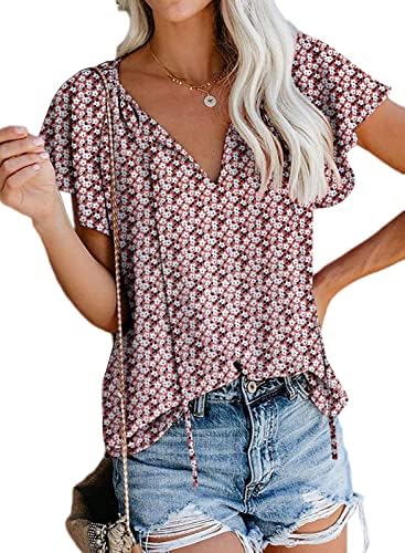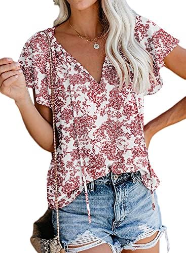 SimpleFun Women's Boho Tops Floral V Neck Short Sleeve Summer Blouse shirts