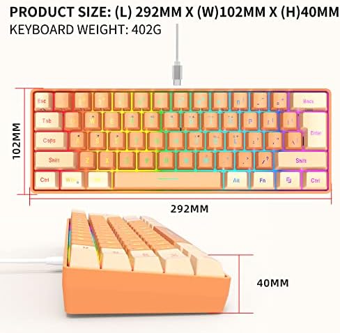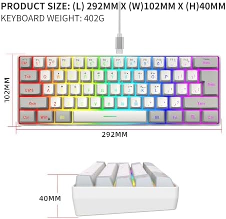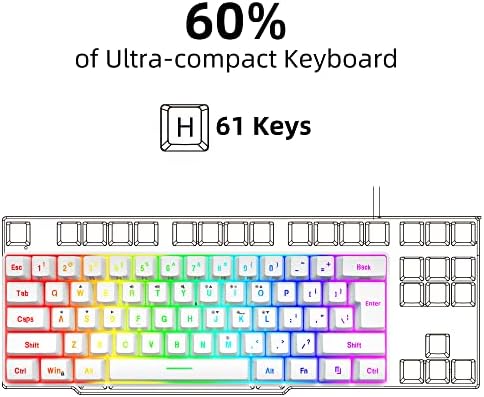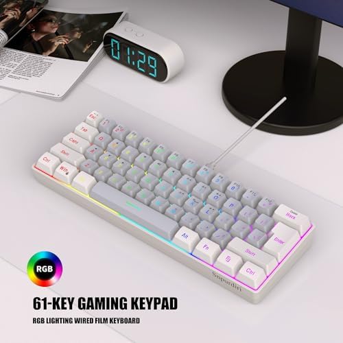 Snpurdiri 60% Wired Gaming Keyboard, RGB Backlit Ultra-Compact Mini Keyboard, Waterproof Small Compact 61 Keys Keyboard for PC/Mac Gamer, Typist, Travel, Easy to Carry on Business Trip(Black-white)