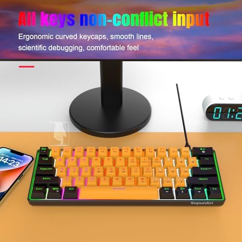 Snpurdiri 60% Wired Mechanical Keyboard, Mini Gaming Keyboard with 61 Red Switches Keys for PC, Windows XP, Win 7, Win 10 (Black-Red, Red Switches)