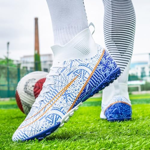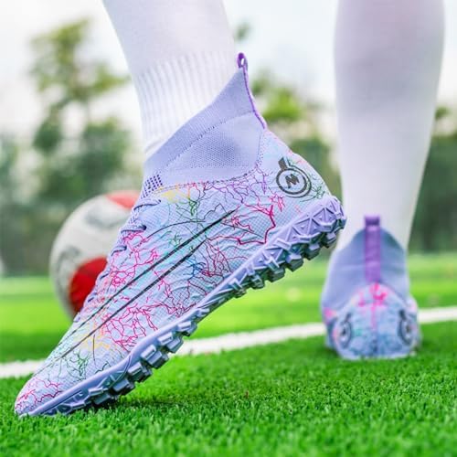 Soccer Cleats for Mens Womens Turf Soccer Shoes Indoor Footall Cleats High Ankle TF AG FG Football Boots Wide Training Sneaker