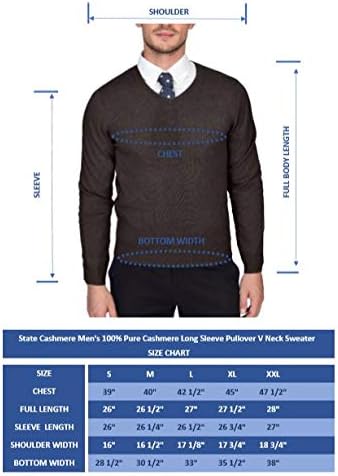 State Cashmere Men's Essential V-Neck Sweater 100% Pure Cashmere Classic Long Sleeve Pullover