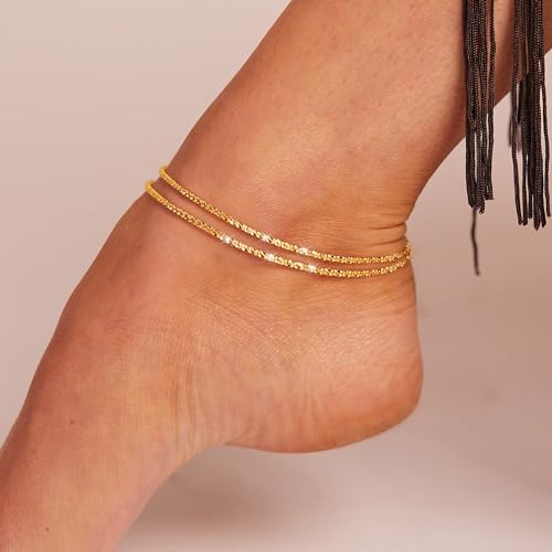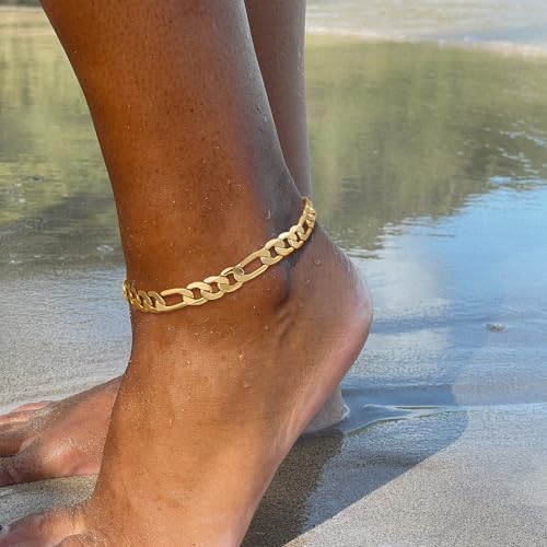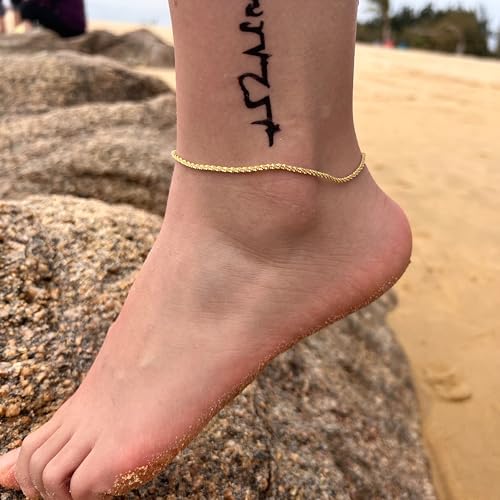 Sterling Silver Ankle Bracelets for Women: Dainty Layered Waterproof Anklet for Women Adjustable Womens Anklet Set Stackable Turquoise Figaro Beaded Cuban Link Anklets Beach Jewelry for Women