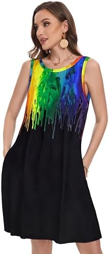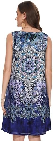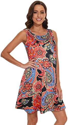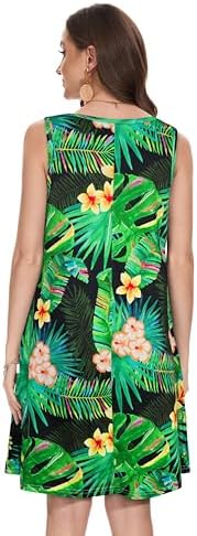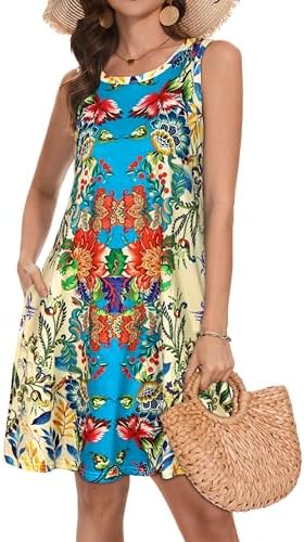 Summer Dresses for Women Beach Boho Sleeveless Vintage Floral Flowy Pocket Tshirt Tank Sundresses