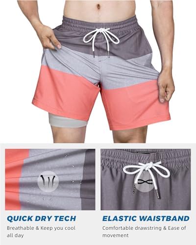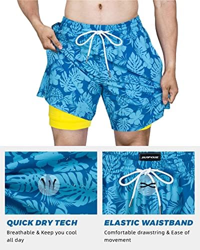 SURF CUZ Mens Swim Trunks with Compression Liner Quick Dry Swim Shorts 7" Swimming Trunks Stretch Zipper Pockets