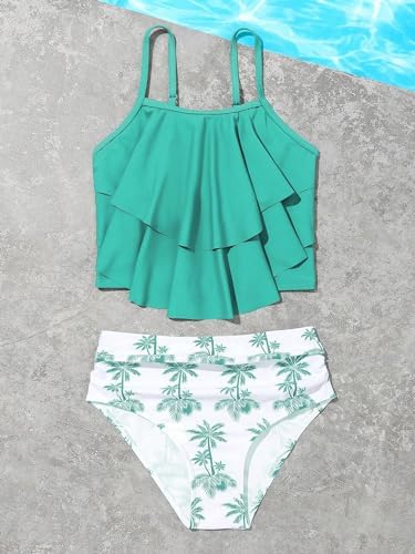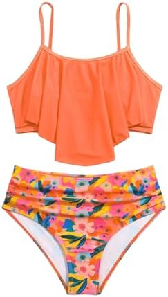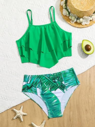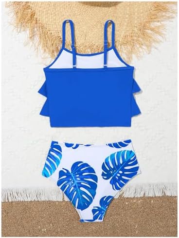 SweatyRocks Girl's Two Piece Swimsuit Graphic Print Ruffle Flounce Cute Bikini Set Bathing Suit