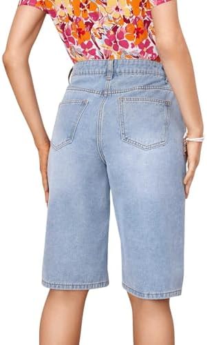 SweatyRocks Women's Casual High Waist Straight Leg Jean Shorts Raw Hem Denim Bermuda Shorts
