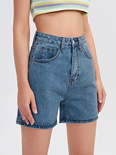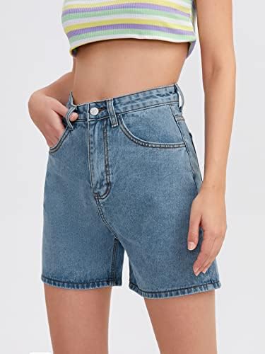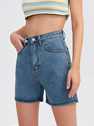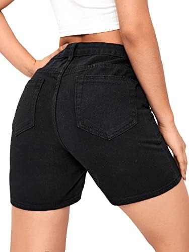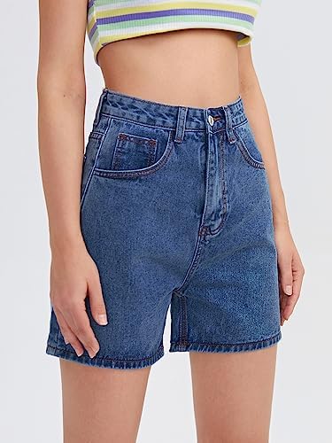 SweatyRocks Women's High Waist Straight Leg Denim Shorts Solid Jean Shorts Summer Hot Pants with Pockets