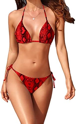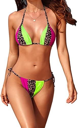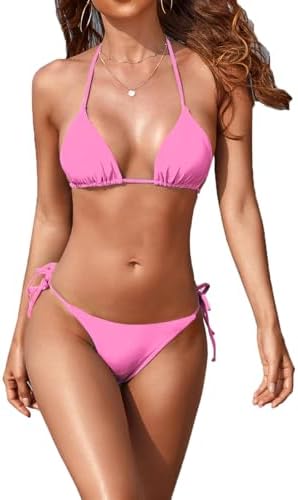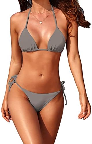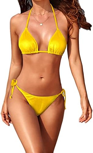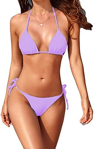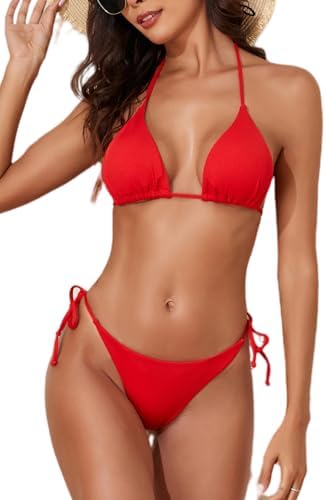 Tainehs Women's Sexy Halter Thong Bikini Tie Two Sides Bottom Triangle Bikini Swimsuits