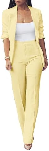 Tcremisa Women's Fashion 2 Piece Pant Suit Dressy Lapel One Button Blazer and Slim Fit Pants Set Business Outfits