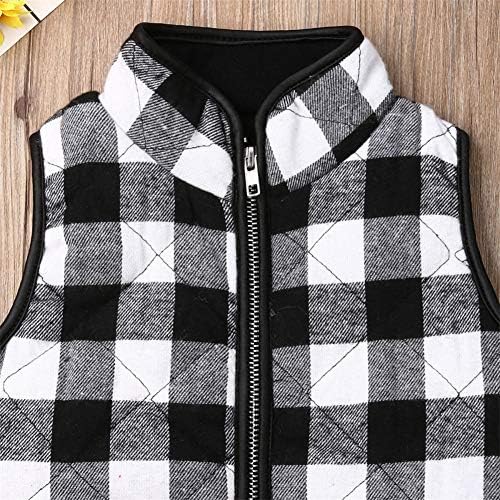 Toddler Baby Girl Plaid Zipper Jacket Kids Sleevless Fall Winter Warm Waistcoat Vest Pocket Coat Tops