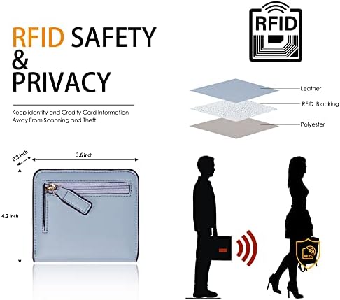 GOIACII Small Women Wallet Genuine Leather RFID Blocking Bifold Zipper Pocket Card Holder with ID Window