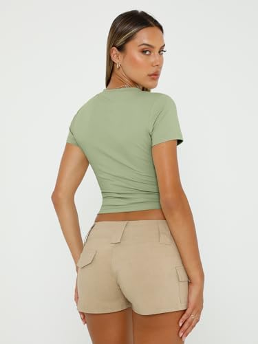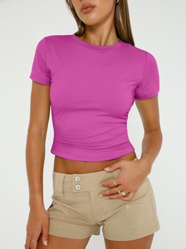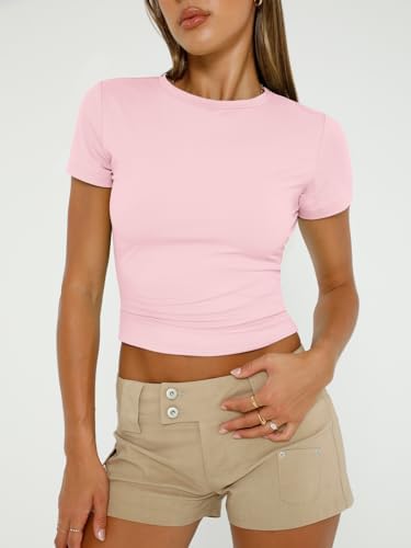 Trendy Queen Womens Basic T-Shirts Scoop Neck Short Sleeve Crop Tops Cute Summer Tops Slim Fit Tees Y2k Clothing 2024