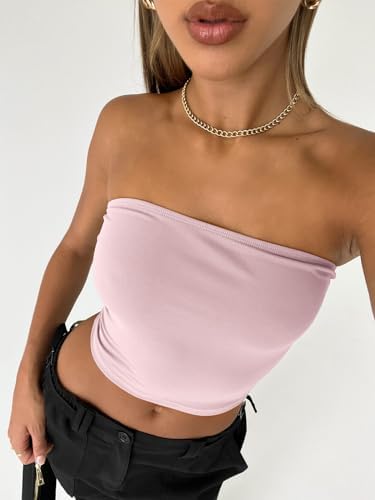 Trendy Queen Womens Tube Tops Strapless Crop tops Basic Backless Sleeveless Bandeau Cute 2024 Summer Outfits Sexy Solid Tops