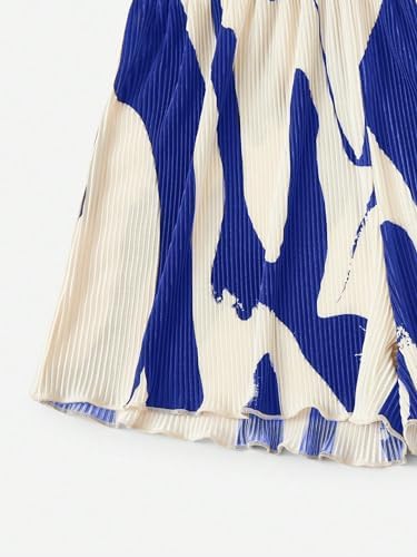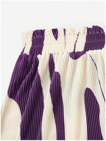 Verdusa Women's Elastic Waist Lettuce Trim Printed Wide Leg Loose Shorts