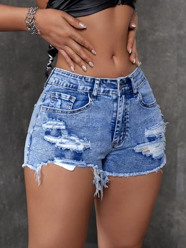 Verdusa Women's Ripped Distressed Skinny Denim Shorts
